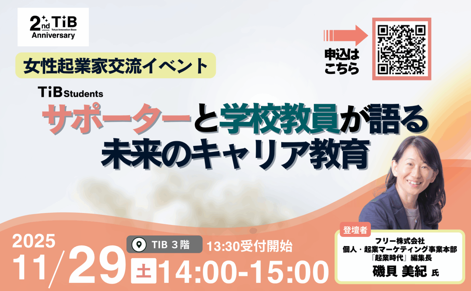 女性起業家交流イベント内で当事業主催 『TIB studentsサポーターと学校教員が語る未来のキャリア教育』を開催します。